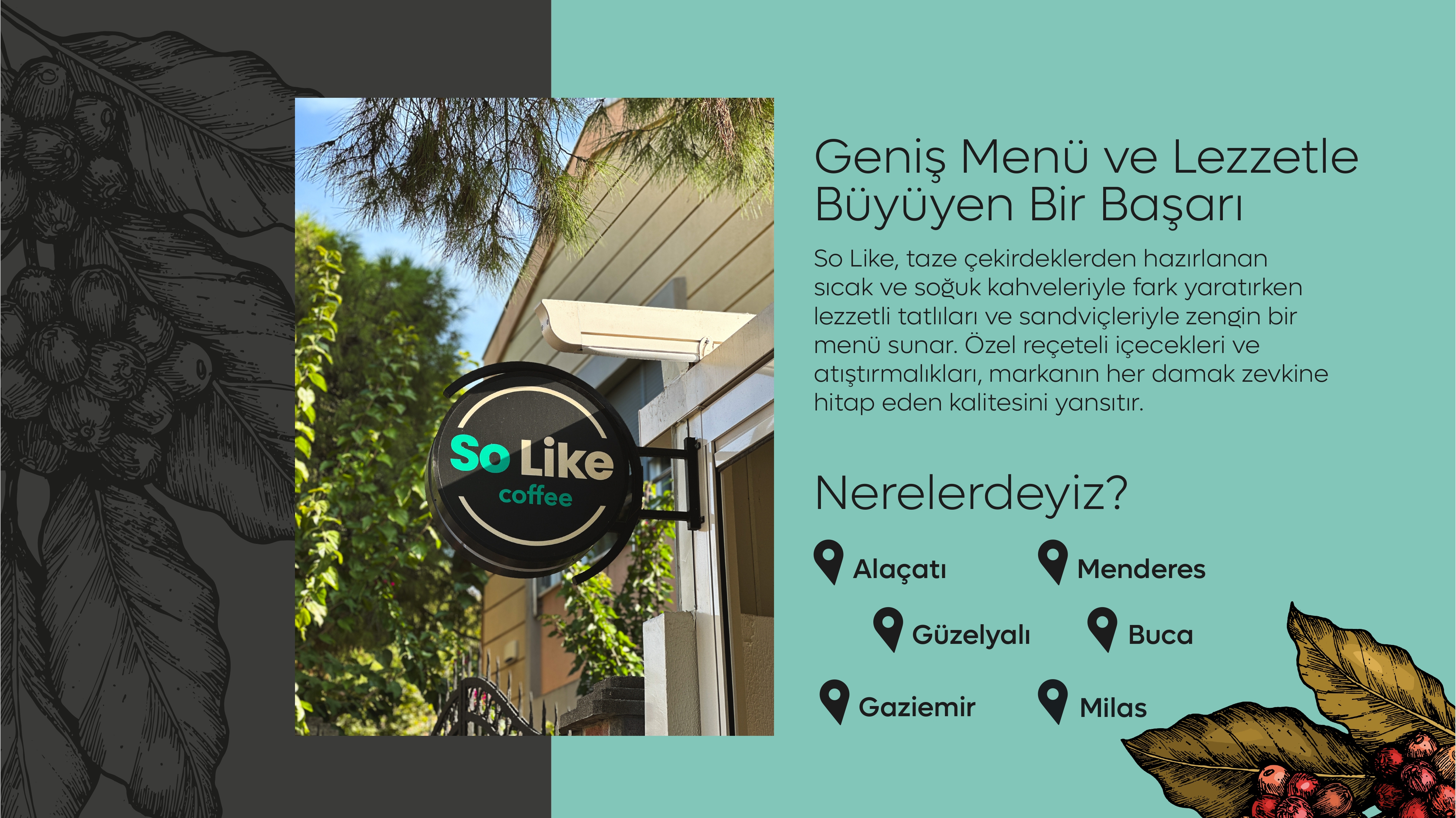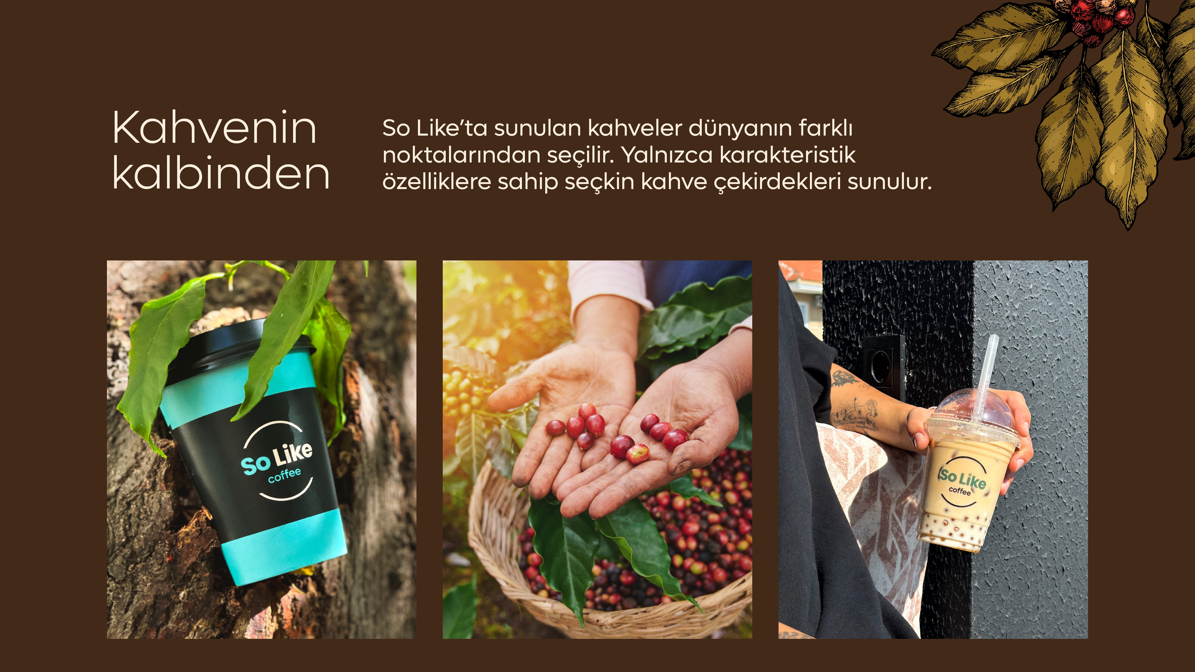 İstersen sıcak yaz aylarında biraz olsun içini ferahlatmak için fresh bir içeceğe ihtiyaç duyduğunda, istersen içini ısıtan sıcacık kahve eşliğinde en sevdiğin arkadaşların ya da ailenle saatlerce oturup sohbetin dibine vururken, istersen ders çalışırken ya da kitabını okurken enfes bir atıştırmalık eşliğinde, So Like her zaman seninle…